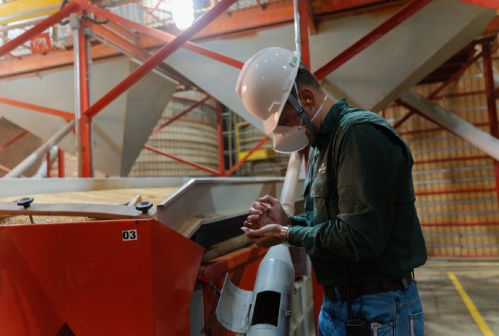 Após o recebimento das cargas, o processo começa com a pré-limpeza, que elimina impurezas e grãos fora de padrão. Em seguida, as sementes são armazenadas em silos com sistemas de aeração, onde passam por secagem controlada até atingir níveis ideais de umidade — entre 12% e 12,5%.