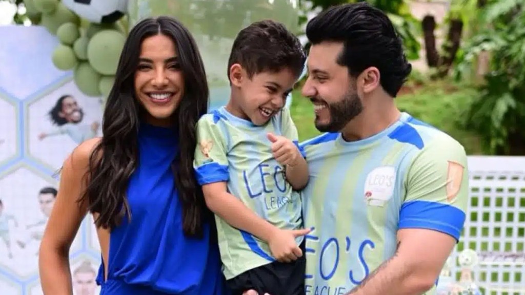 Gabriela Versiani exibe look dela e de Léo, filho de Murilo Huff para gravação do cantor