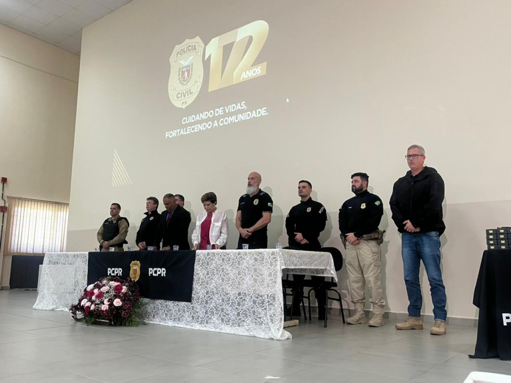 PRESENÇAS – Também estiveram presentes o delegado-chefe da 14ª Subdivisão Policial de Guarapuava, Alysson Henrique de Souza; o delegado-chefe da 4ª Subdivisão Policial de União da Vitória, Douglas Carlos de Possebon e Freitas; o delegado-chefe da 3ª Subdivisão Policial de São Mateus do Sul, Vinícius Fernandes Maciel; O chefe da Delegacia da Polícia Rodoviária Federal em Ponta Grossa, Luís Fernando Berteli; o subcomandante do 2º Batalhão de Bombeiros Militares de Ponta Grossa (2º BBM), Major Renan Augusto Bortolassi de Oliveira; representando a 5ª Companhia da Patrulha Escolar da Polícia Militar, tenente Osório; e representando o Departamento Penitenciário de Ponta Grossa, o diretor Bruno José; e a prefeita de Ponta Grossa, Elizabeth Schmidt.