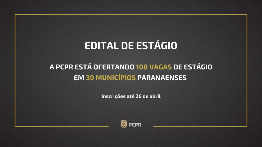 A Polícia Civil do Paraná (PCPR) está ofertando 108 vagas de estágio para estudantes do ensino médio, técnico e superior em 39 municípios paranaenses. As inscrições estão disponíveis entre 17 de abril e 26 de abril.