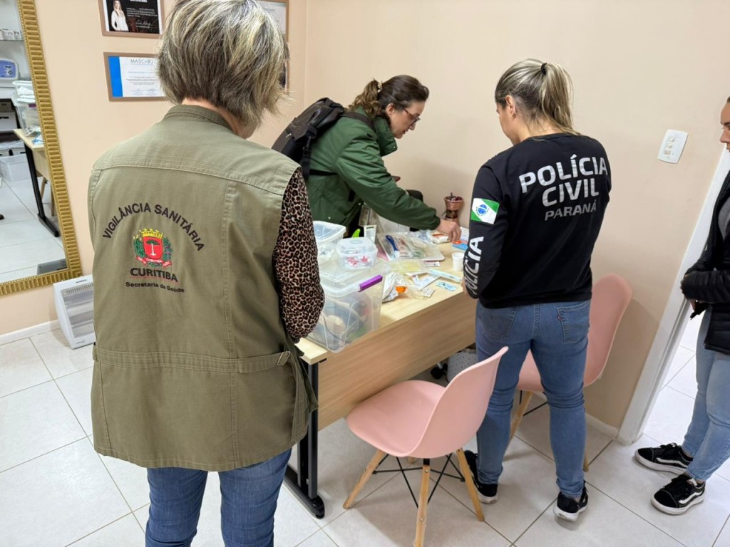 Conforme a delegada da PCPR Aline Manzatto, a ação foi realizada em conjunto com a Vigilância Sanitária de Curitiba e fiscais do Conselho Regional de Medicina do Paraná durante fiscalização em uma clínica de cirurgias faciais.