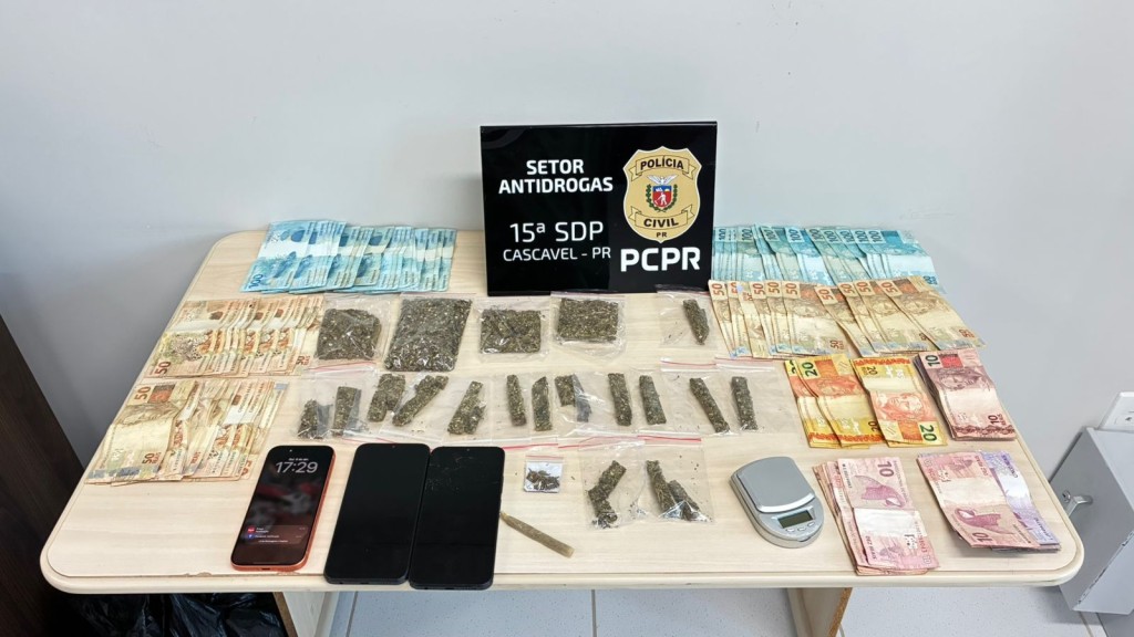 Segundo o delegado da PCPR Eduardo Kwasinski, também foram apreendidos uma balança de precisão, três aparelhos celulares e R$ 6 mil em dinheiro.