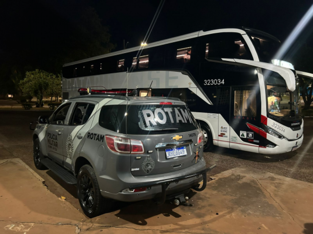 Em outra abordagem, no compartimento de bagagens de um ônibus, os policiais encontraram uma mala contendo tabletes de maconha, que totalizaram aproximadamente 25 quilos após pesagem.