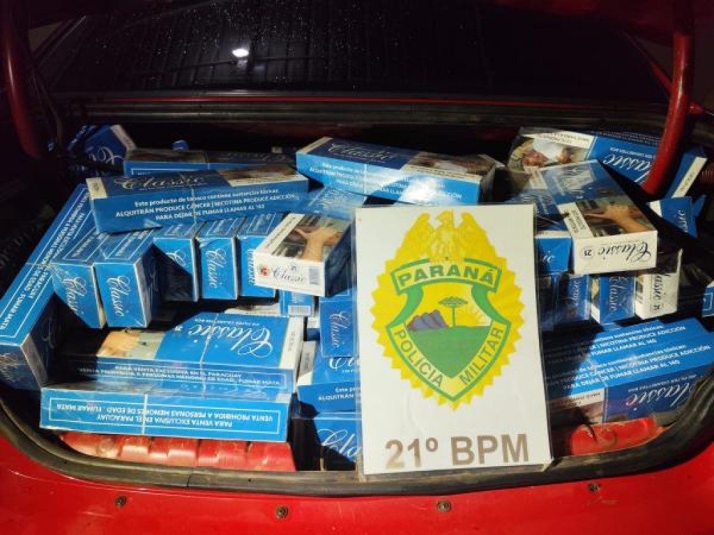 A Polícia Militar do Paraná (PMPR) apreendeu uma carga de cigarros contrabandeados e um veículo na madrugada de domingo (28), no interior do município de Capanema, região de fronteira com a Argentina.