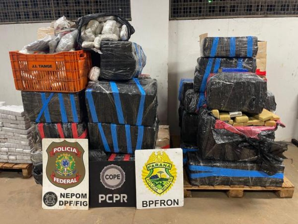 Na última quinta-feira (4), a Polícia Militar do Paraná (PMPR), por meio do Batalhão de Polícia de Fronteira (BPFRON), apreendeu um carro e mais de uma tonelada de maconha em ação conjunta com a Polícia Federal (PF) e Polícia Civil do Paraná (PCPR) em Foz do Iguaçu.