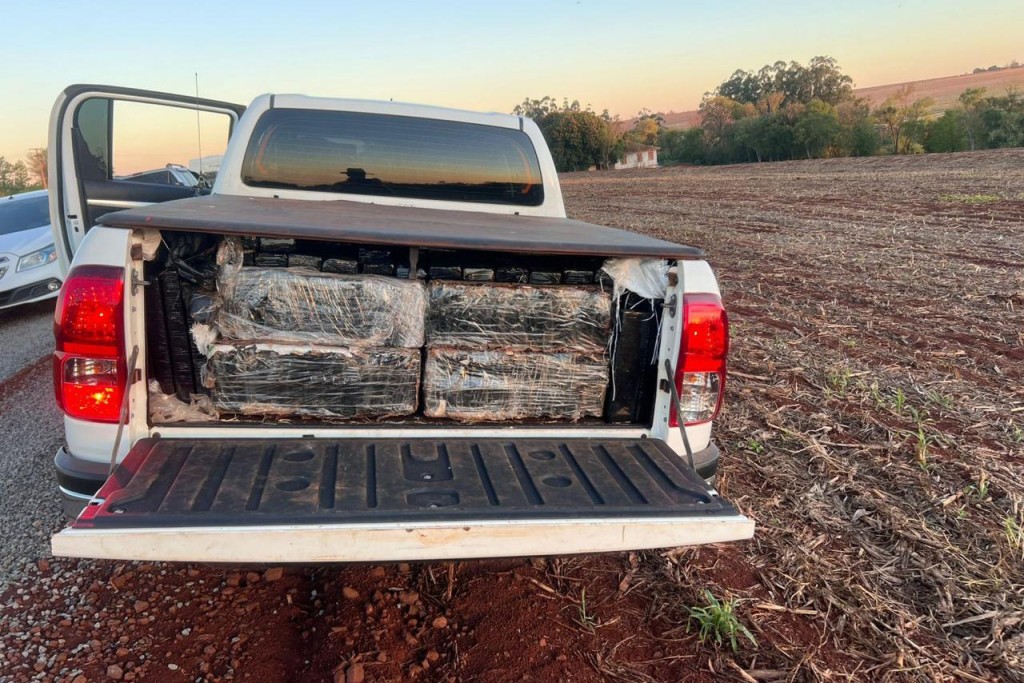 Ao chegarem, os policiais notaram uma movimentação atípica e viram suspeitos carregando fardos em uma caminhonete Hilux e em um Fiat Mobi. Ao perceberem a presença da equipe, eles fugiram.