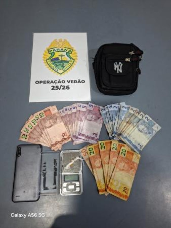 A Polícia Militar do Paraná (PMPR)prendeu, na terça-feira (13), um homem suspeito de envolvimento com o tráfico de drogas no município de Guaratuba, no litoral do Estado. A ação ocorreu após a equipe policial receber informações de que um indivíduo estaria saindo de uma área de mata e iniciando a comercialização de entorpecentes na esquina da Rua Ortigueira.