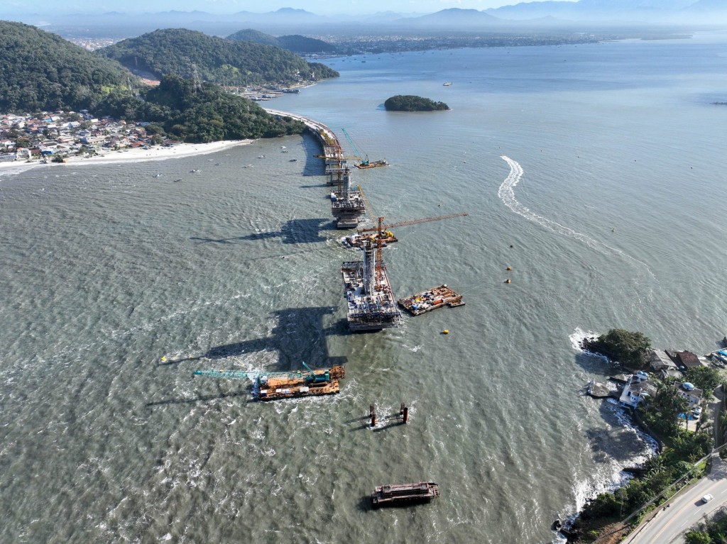 Ponte de Guaratuba alcança 73% de execução e avança nos acessos e trecho estaiado