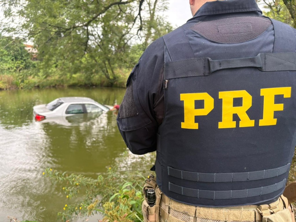 PRF apreende agrotóxicos após dupla de menores “mergulharem” com o carro num açude no Paraná