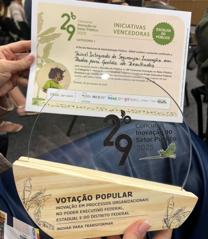 O projeto Painel Integrado de Segurança: Inovação em Dados para Gestão de Resultados da Polícia Civil do Paraná (PCPR) foi um dos vencedores do Prêmio Voto Popular no 29º Concurso de Inovação no Setor Público. O resultado foi apresentado na manhã desta quinta-feira (2), em Brasília, durante a Semana de Inovação 2025.