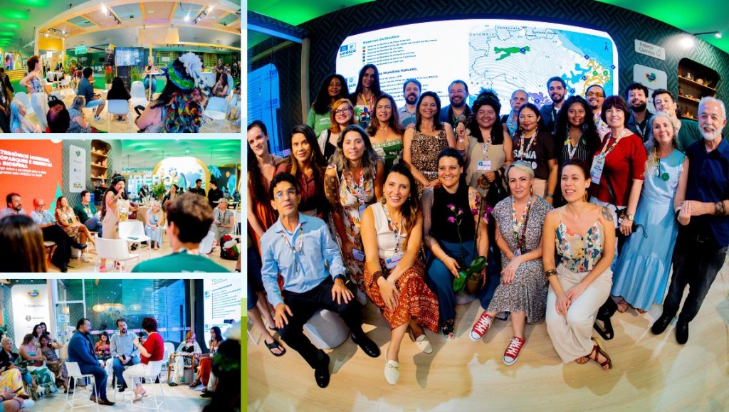 Uma roda de conversa realizada nesse sábado (15.11), no estande do Ministério do Turismo na Green Zone da COP30, debateu o papel estratégico das áreas reconhecidas pela UNESCO no Brasil – Patrimônios Mundiais, Geoparques e Reservas da Biosfera – no desenvolvimento sustentável do país. O encontro, que reuniu especialistas, gestores públicos e representantes da sociedade civil, abordou a necessidade de se articular conservação ambiental, valorização cultural e geração de oportunidades nas regiões chanceladas.