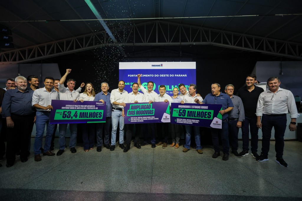 INVESTIMENTOS NA REGIÃO – O anúncio foi feito durante a agenda do governador em Santa Helena, onde também foram confirmados outros investimentos estruturantes para a região. Ratinho Junior liberou a implantação de um trevo na PR-488 e a construção do contorno viário do município, além de um pacote de aproximadamente R$ 59,5 milhões voltado à infraestrutura rural de cidades do Oeste.