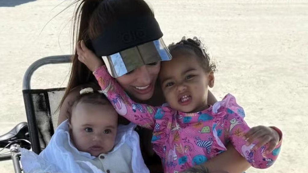 Bruna Biancardi curte dia de sol com as filhas Mavie e Mel, em Santos: ‘Sol e água’